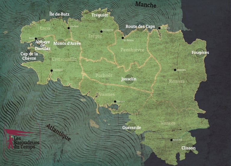 Cela fait plusieurs années que je vis en Bretagne, passionné par son histoire et son identité, j’en ai écrit un guide « le Trône de Bretagne » pour vous faire découvrir un petit bout de Moyen-Âge en Bretagne dont voici le décor :